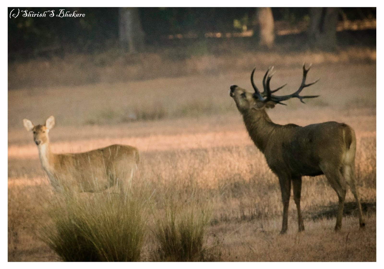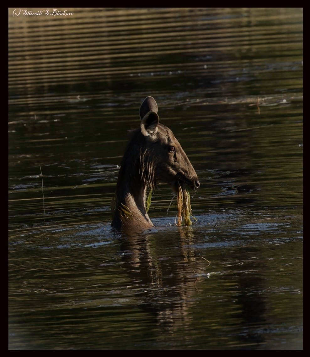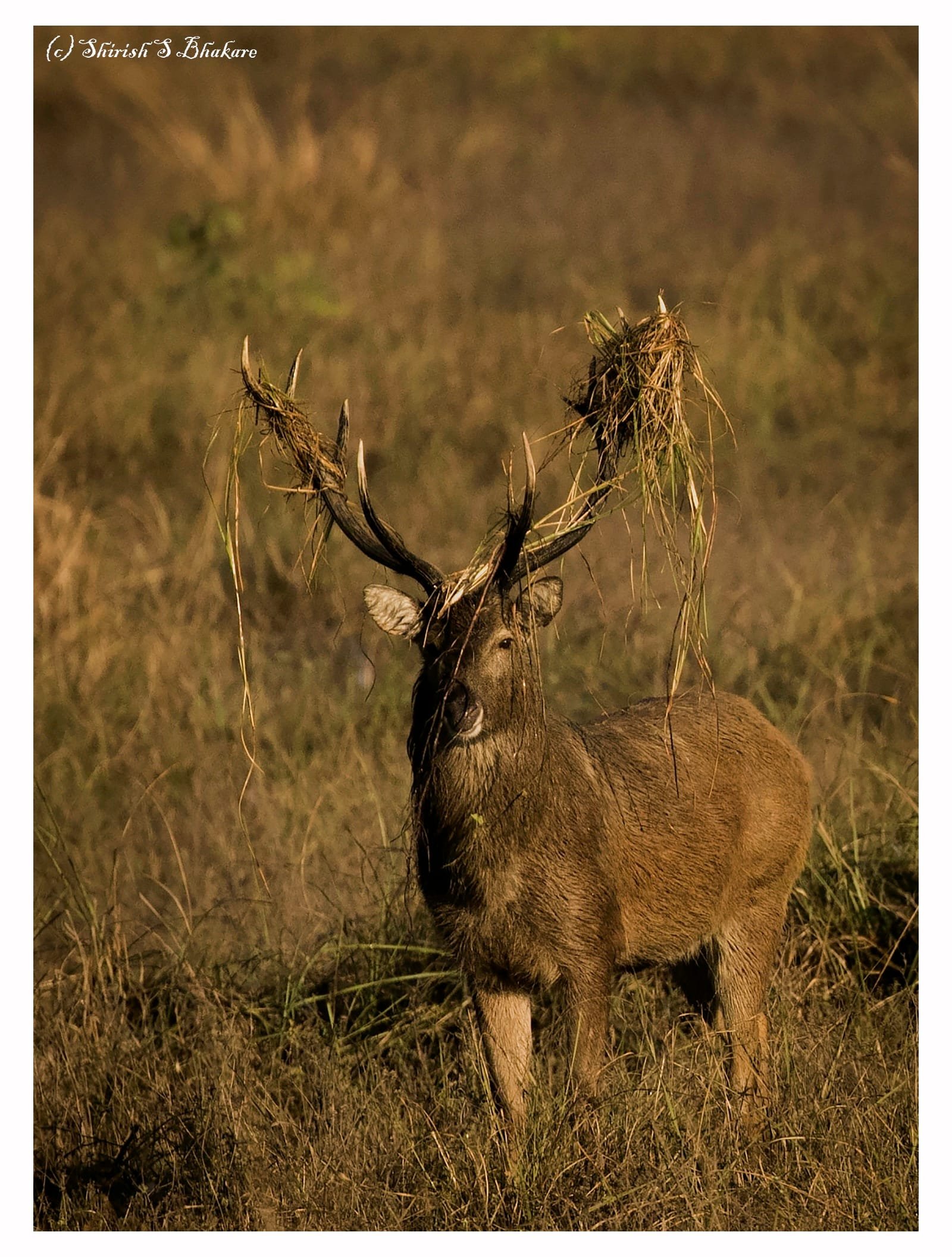 If you want to see Bhoorsingh, Kanha meadows is place to go. The presence of this magnificent deer enriches the meadows. The behaviour of Bhoorsingh is fun to observe. A male will have a harem of up to 20 females. To ensure his genes continue to flourish he has to guard the harem, defend against challengers and mate with his concubines in heat. During courtship, male will announce his presence to competitor males by loud sound like roar. To appear bigger and impressive to the females and competition, the male will decorate antlers with grass. If required they will get into fights with other males and ensure they father new generation. Mating season generally is from September to April. Fawns are born August to November when the grass is green to feed and hide from predators.