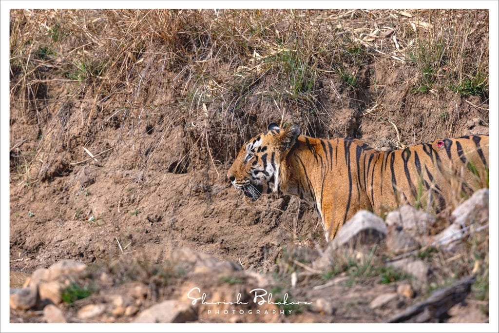 As result of movement of these intruders, Zharni and Bhanu have secured there cubs to the densest part of buffer in Northern fringes. Babli doesn’t seem to be having much scope. The cubs are frequently seen and at leisure if you enter the buffer from Nimdhela/Ramdegi gate. The update as on date is that, CM is recovering well thanks to his warrior queens ability to defend themselves against intruders.