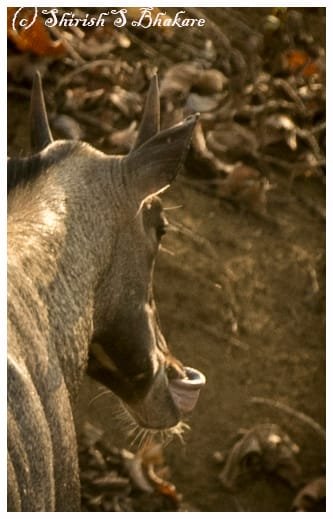 Some very rarely observed behaviour of Neelgai is the cleansing and mating behaviour. Neelgai clean nostril using their tongues to ensure humidity and cleanliness. Also Neelgai are known to walk with tail raised posture when they are ready to mate. The energy just before the start of ritual is fun to watch. See images below: