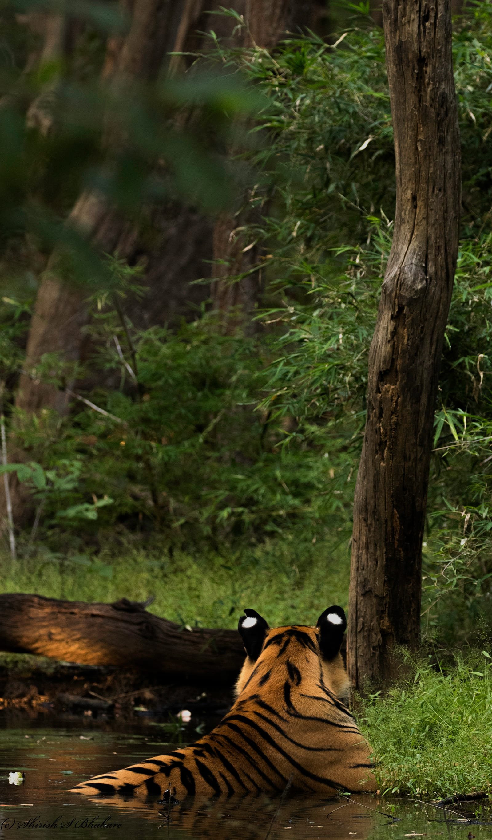 Every tiger has one white spot behind each ear. When you look from behind they look like eyes, hence known as false eyes. It’s role in communication is still under intensive study. But it is strongly believed that the mother uses the movement of ears (false ears) to communicate with cubs in wild.