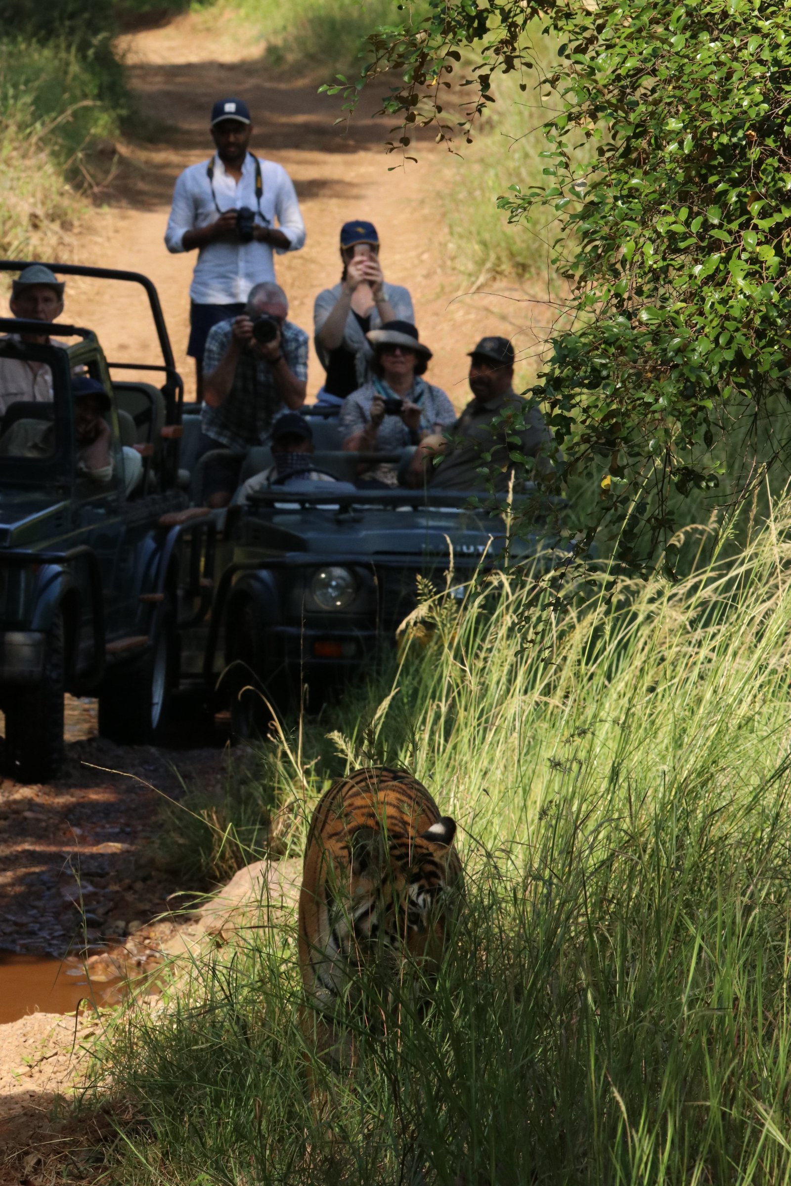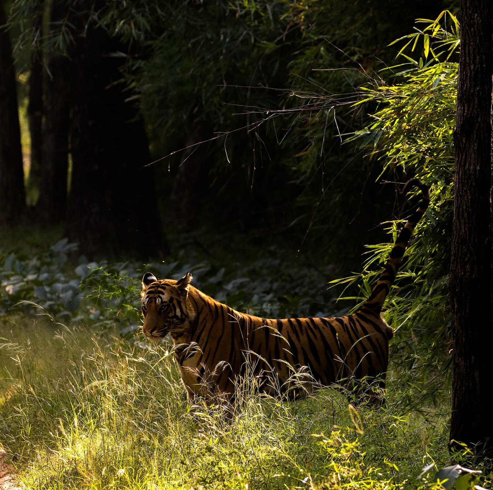 I have observed these closely and what intrigues me the most is the use of false ears and chemical communication based on smell. The chemical code contains the details of tiger in form of: Age, gender, sexual maturity and ovulation cycle and are used for communicating territorial limits and availability for mating. Tiger scent mark their presence using different methods mentioned below: