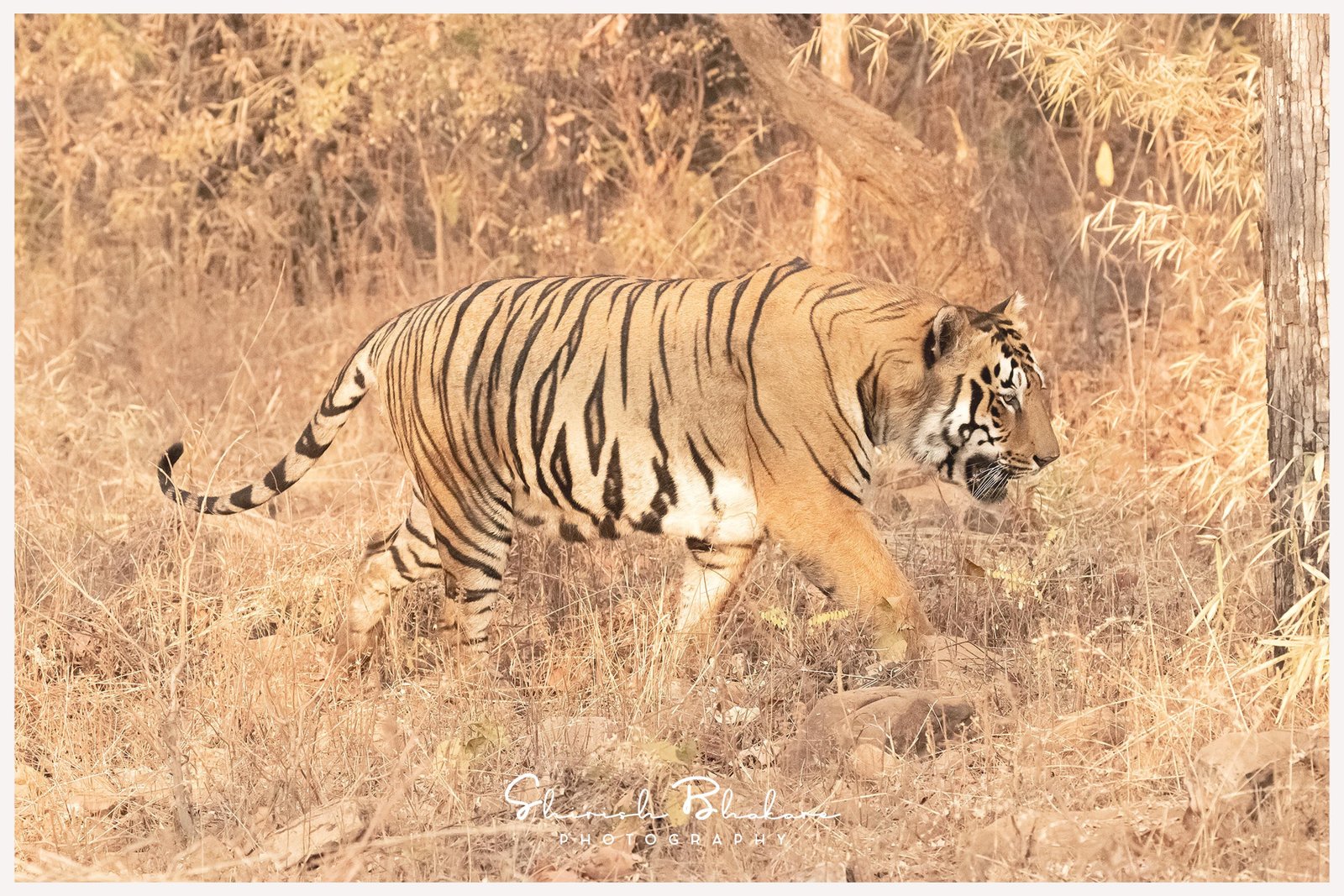 It was my 75th safari till date when I saw the “Golden Tiger”. I have been going to jungle excursion pretty regularly until COVID-19 impacted us all in March 2020. After a gap of almost a year, I dared and headed to Tadoba National Park to do 8 safari in month of Jan 2021. This time my experience was that of extreme highs and lows. It started with high of sighting one tigress for more than 2.5 hours. I had gone alone for my first safari. What a show she put up. She showcased all classic signs of tiger relaxed and lazing in shade before moving out for evening walk. I was hopeful luck would favour in all upcoming safaris. I was doomed is what I felt after next four safari. All 4 dry safari. It was my lowest point because my guests were along with me and they didn’t get to see tiger. It couldn’t have been worst as a host. Not seeing tiger at Tadoba. The feeling didn’t sink in for me for a very long. It was a fact that was hard to digest. I felt my 8 dry safaris that I had in Corbett Tiger Reserve were no graver than this. But that is how jungle safaris are natural, wild and unpredictable.
